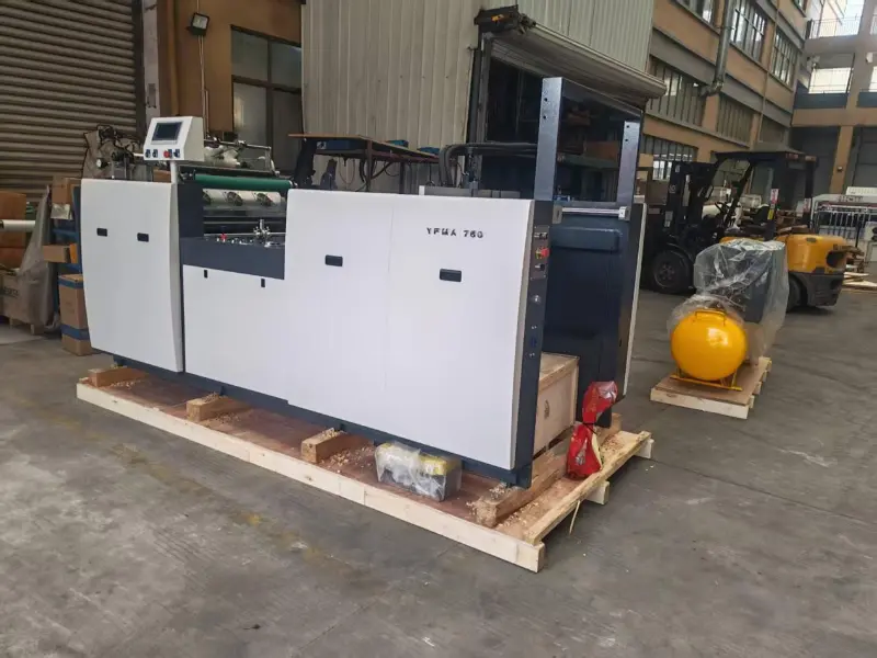 Συσκευάζουμε το YFMA-760Αυτόματο μηχάνημα πλαστικοποίησης προεπικάλυψης, Τέλος, θα συσκευαστεί σε ξύλινο τελάρο.